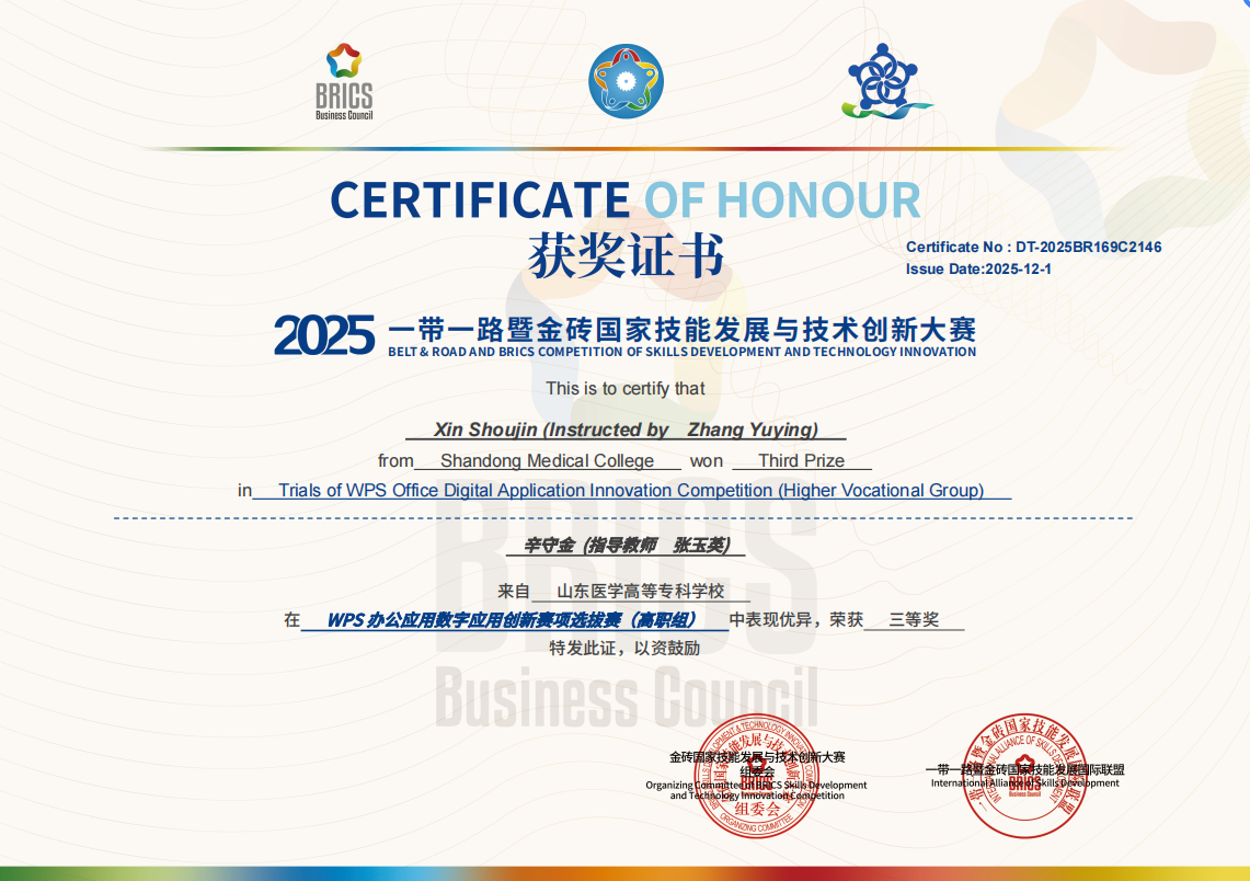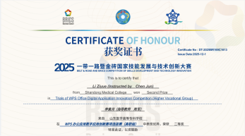 近日,2025年“一带一路暨金砖国家技能发展与技术创新大赛”WPS办公应用数字应用创新赛项北部赛区选拔赛圆满结束。山东医专师生表现优异,斩获多项荣誉,展现专业素养与创新能力。在教师组比赛中,张玉英、高艳玲获一等奖,惠磊、李梦男、葛惠杰团队获三等奖。学生组成绩斐然,李紫月获高职组二等奖并晋级全国总决赛,董鑫雨、李书童、辛守金获三等奖,彰显学校信息技术应用人才培养成效。