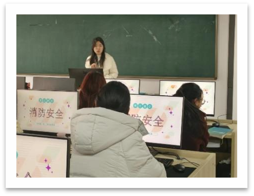 活动紧扣信息技术实训特点,构建 “理论 + 实操 + 责任 + 演练” 安全教育体系。授课教师围绕信息机房操作、用电规范、消防安全等开展专题宣讲,通过 PPT 演示、案例分析等方式让学生掌握安全要点;实验教师利用课间开展灭火器实操教学,现场示范 “提、拔、握、压” 操作法,讲解适用场景,提升学生初期火灾扑救能力。